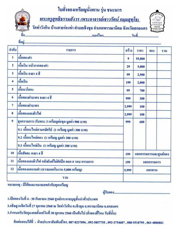 *** เปิดจอง// เหรียญนั่งพาน รุ่น ชนะมาร พระอาจารย์เชาวรัตน์ กมฺมสุทฺโธ วัดท่าวังหิน จ.สกลนคร