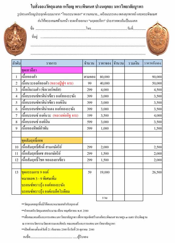 **กำหนดรับวัตถุมงคลประมาณ เดือน พฤศจิกายน พ.ศ. 2560