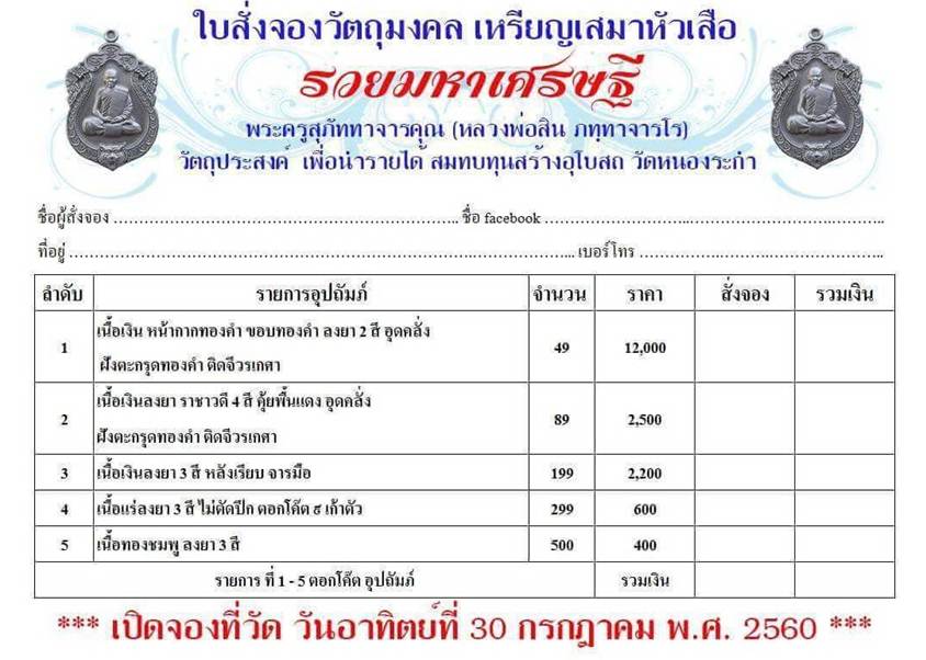 แบ่งจองรายการหายาก ชุดอุปถัมป์ เหรียญเสมาหัวเสือ "รวยมหาเศรษฐี" หลวงพ่อสิน วัดละหารใหญ่ จ.ระยอง#A4