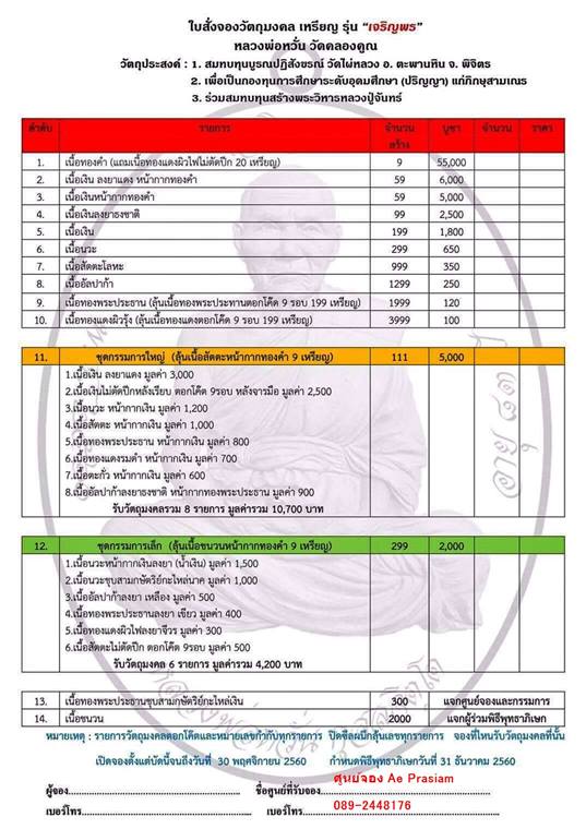*** เปิดจอง// เหรียญเจริญพร หลวงพ่อหวั่น วัดคลองคูณ จ.พิจิตร