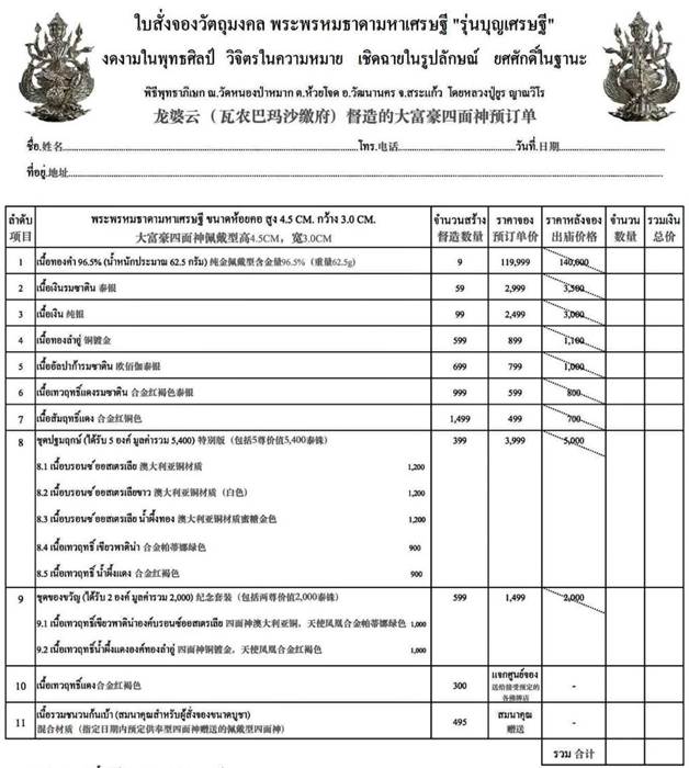 รายการ 8.ชุดปฐมฤกษ์ (ได้รับวัตถุมงคล 5 องค์ มูลค่ารวม 5,400.-บาท) ราคาจอง 3,999.-บาท มียอด = 2
