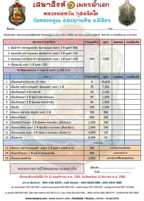 รายการ 8.เนื้อนวะโลหะ ราคาจอง 500.-บาท มียอด = 2