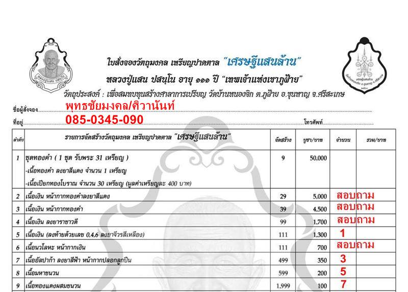 จองรายการที่ 5 = 1 เหรียญ 1300 บาท