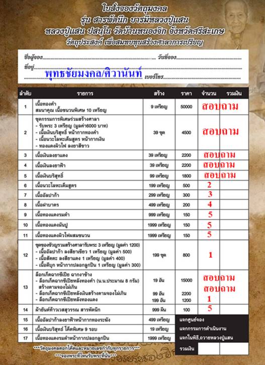 วัตถุประสงค์ เพื่อสมทบทุนสร้างศาลาการเปรียญ
