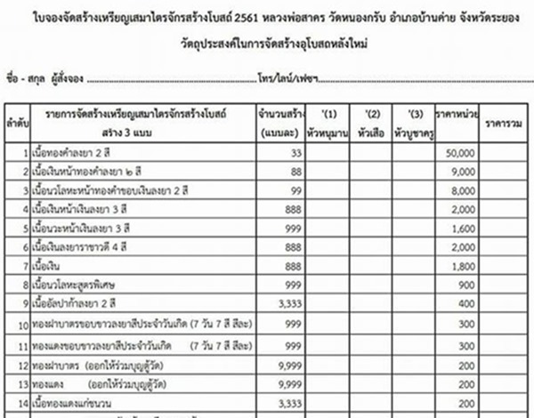 มียอดรายการที่12และ13เนื้อละ3พิมพ์ พิมพ์ละ50เหรียญ ราคาวัดเหรียญละ200บาท