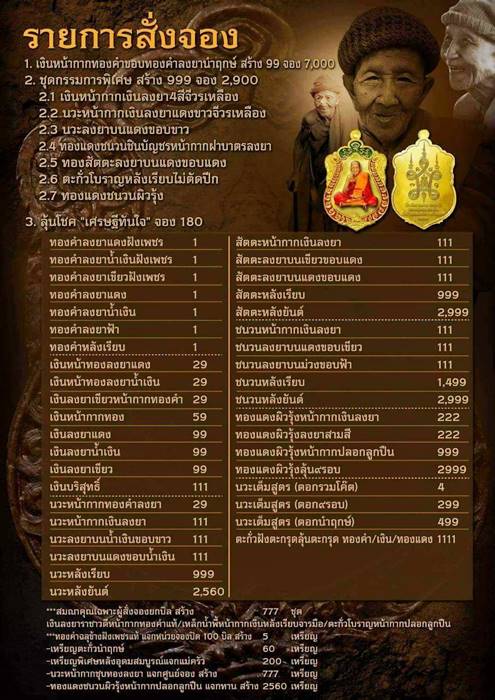 รายการ 1.เนื้อเงินหน้ากากทองคำลงยา นำฤกษ์ ราคาจอง 7,000.-บาท มียอด = สอบถาม