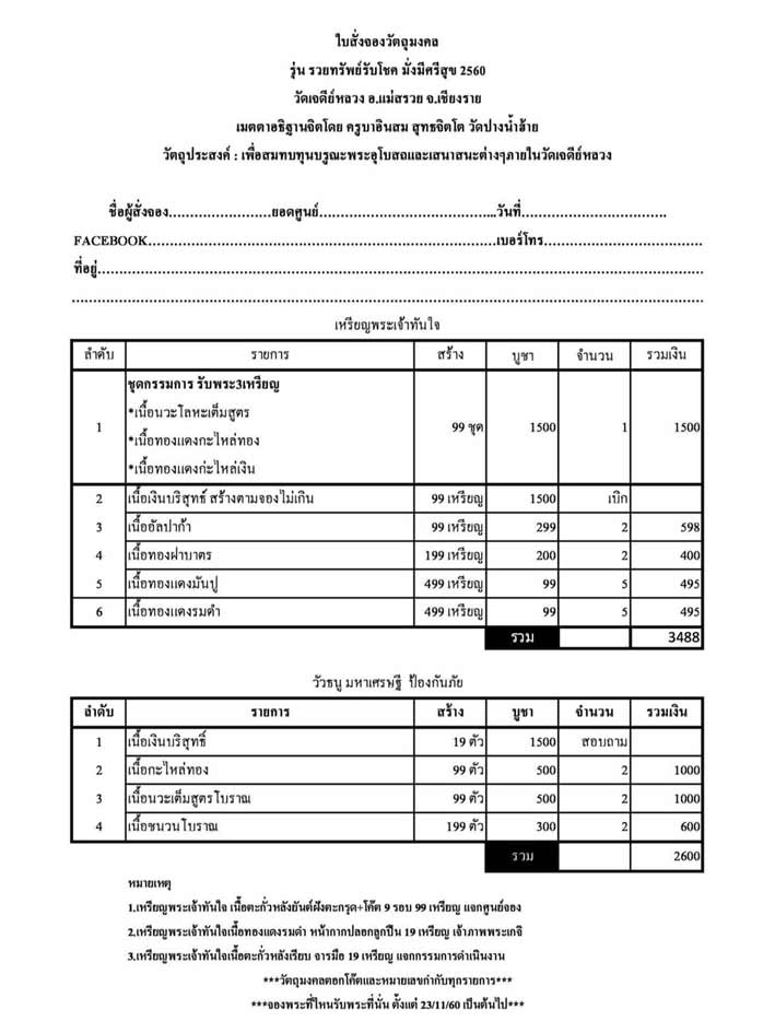 [[[เปิดจอง]]]วัตถุมงคล รุ่น"รวยทรัพย์รับโชค มั่งมีศรีสุข 2560" วัดเจดีย์หลวง จังหวัดเชียงราย...ครูบาอินสม วัดปางน้ำฮ้าย เมตตาอธิษฐานจิต