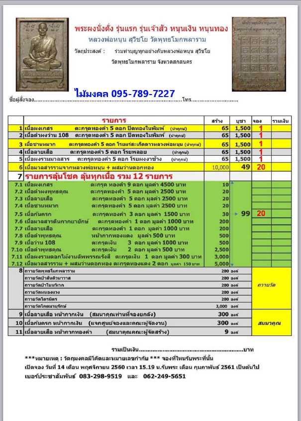 *** ลูกค้านอกเวปโทรสั่งจองได้ที่เบอร์ 080-984-1175 - 095-789-7227 ***