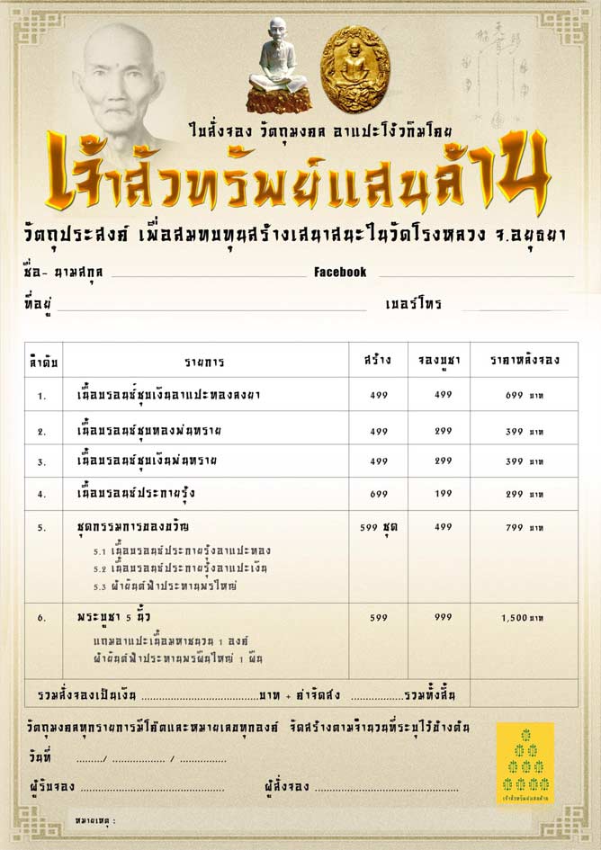 วัตถุประสงค์:สร้างเสนาสนะ วัดโรงหลวง จังหวัดพระนครศรีอยุธยา