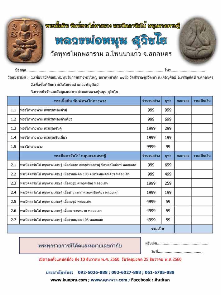 [[[เปิดจอง]]]พระพิมพ์ขี่ไก่หางพวง และพระปิดตา จัมโบ้ รุ่น"หนุนดวงเศรษฐี" หลวงพ่อหนุน สุวิชโย วัดพุทธโมกพลาราม อ.โพนนาแก้ว จ.สกลนคร