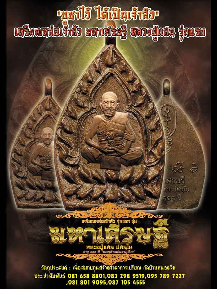 [[[เปิดจอง]]]เหรียญหล่อเจ้าสัว รุ่น"มหาเศรษฐี"หลวงปู่แสน ปสนฺโน วัดบ้านหนองจิก จ.ศรีสะเกษ