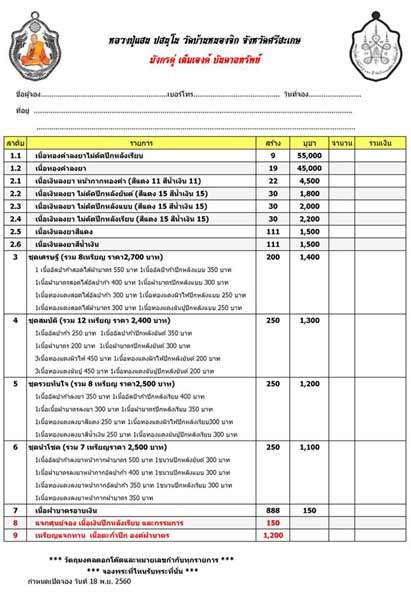 รายการ 6.ชุดนำโชค (รับพระ 7 เหรียญ) ราคาจอง 1,100.-บาท มี 1