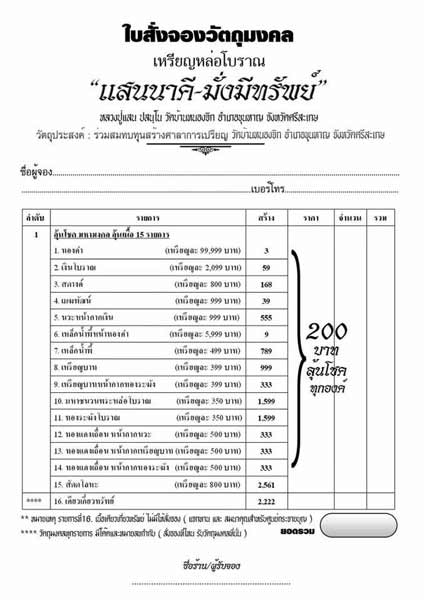 ราคาจอง 200 บาท ลุ้นโชค รายการที่ 1 -14 สวยคลาสสิก แถมได้ลุ้น อยากวัดดวงจัดกันเลยครับผม