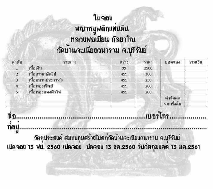 1 เนื้อเงินมี 2องค์ราคาจอง 2500บาท
