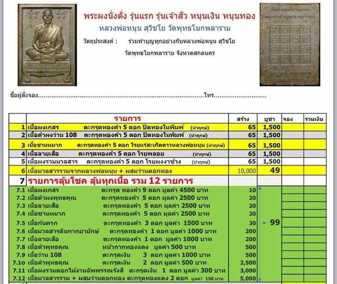 รายการ 6.เนื้อมวลสารจากหลวงพ่อหนุน+ผสมว่านดอกทอง ราคาจอง 49.-บาท มียอด = 50