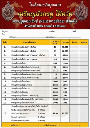 จัดเป็นชุด 3 เหรียญ ราคาชุดล่ะ 1500 บาท มียอด 50 ชุด