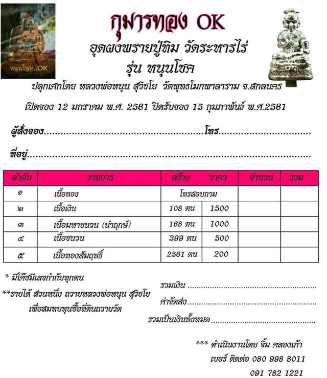 2.เนื้อมหาชนวน(นำฤกษ์) มี 2 ตนๆละ 1,000 บาท