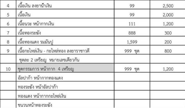 (รายการที่ 4 เนื้อเงินลงยาสีน้ำเงิน เหรียญ สร้าง 99 เหรียญ , รายการที่ 5 เนื้อเงิน สร้าง 99 เหรียญ)
