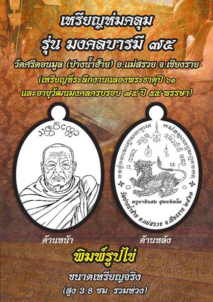 เปิดจอง เหรียญ มงคลบารมี 75 ครูบาอินสม วัดศรีดอนมูล (ปางน้ำฮ้าย)เทพเจ้าแห่งขุนเขา เกจิผู้เป็นตำนานแห่งยุคนี้ ของ จ.เชียงราย อันดับ 1 ของพื้นที่ ส่งต่อความแรงทุกอณู