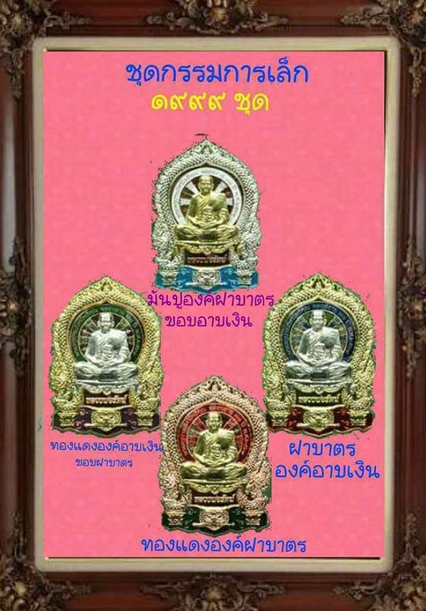 1. ชุดกรรมการเล็กรับพระ 4 เหรียญ + เหรียญเนื้อนวโลหะ 1 เหรียญ รับพระรวม 5 เหรียญ ราคาชุดละ 3,000.- มียอดจำนวน 2 ชุด