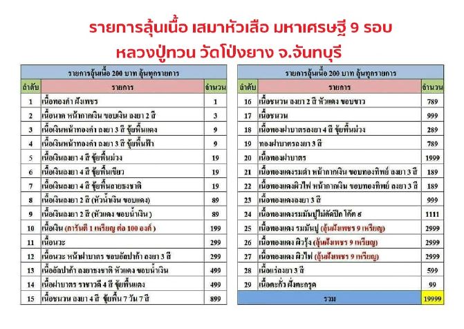 -รายการที่ 11 ลุ้นเนื้อ (29เนื้อ) องค์ละ 200 บาท