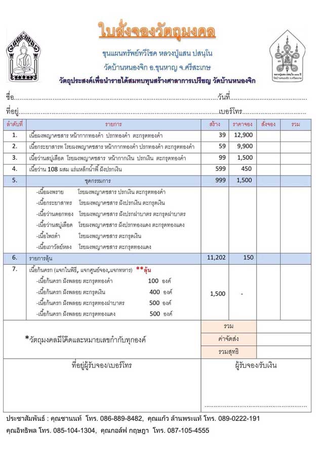 6.รายการลุ้นเนื้อ มี 50 องค์ๆละ 150 บาท