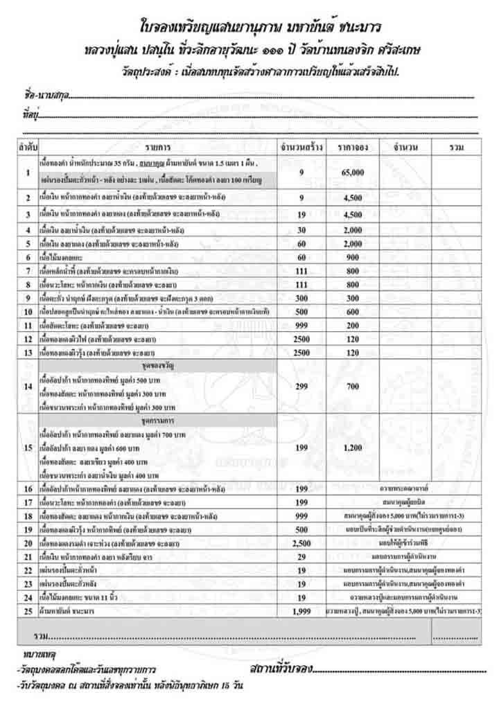 เปิดจองตั้งแต่วันนี้เป็นต้นไป วัตถุมงคลมีการปิดผนึกซีลทุกรายการ