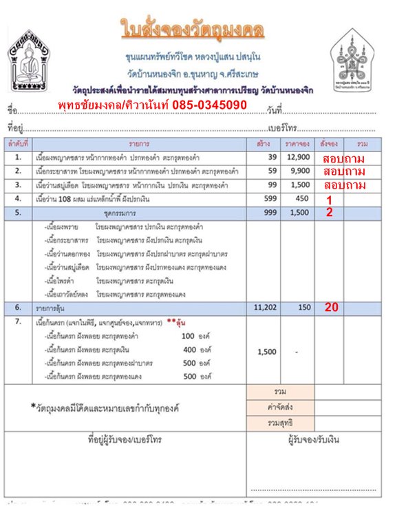 วัตถุประสงค์ : เพื่อสมทบทุนสร้างศาลาการเปรียญ