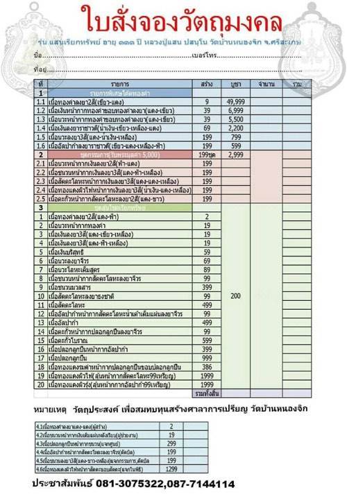 🌟รายการชุดลุ้นโชคเรียกทรัพย์