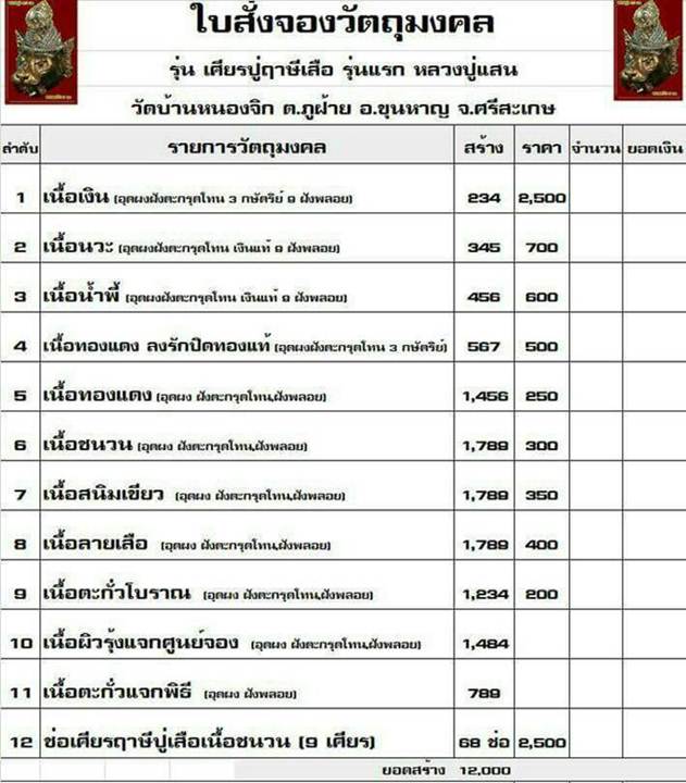6.เนื้อชนวน มี 1 องค์ๆละ 350 บาท