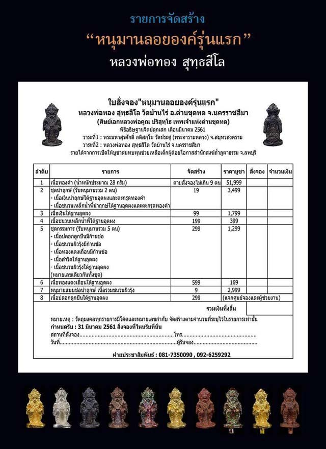 3.เนื้อเงินใต้ฐานอุดผง มี 1 องค์ๆละ 1,799 บาท