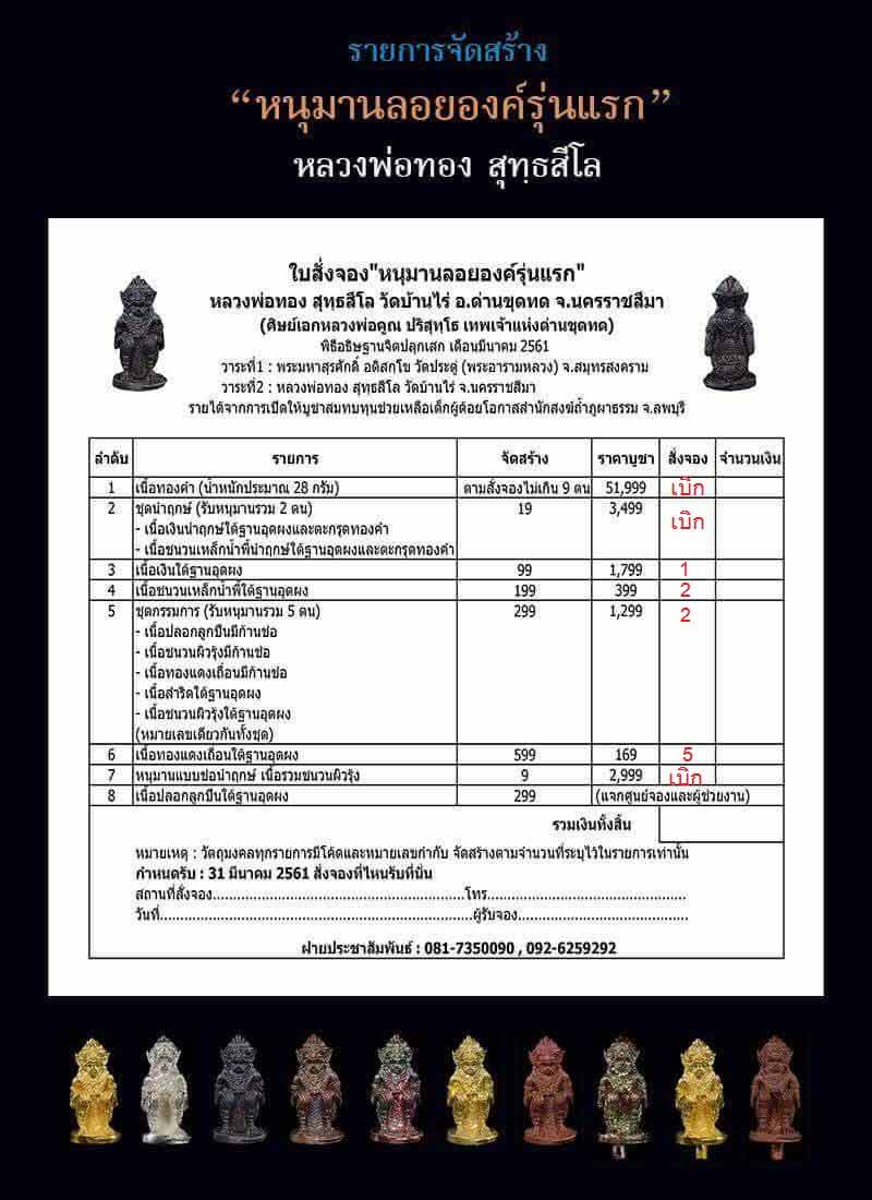 3.เนื้อเงินใต้ฐานอุดผง มียอด 1 องค์ๆละ 1,799 บาท