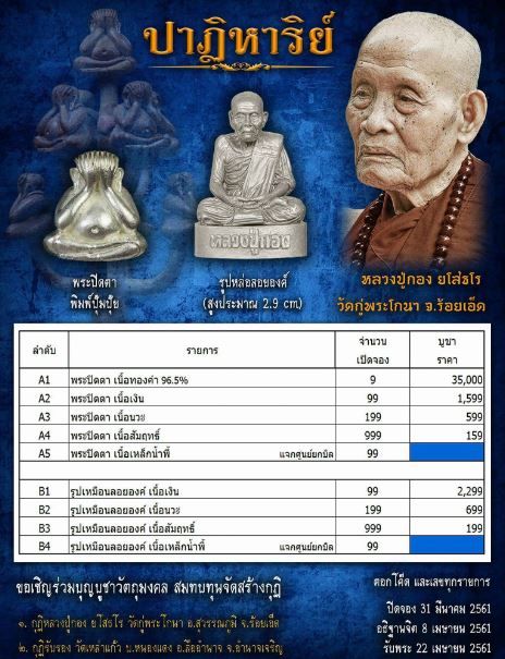 เปิดจอง พระปิดตา และรูปหล่อลอยองค์ รุ่น ปาฎิหาริย์ หลวงปู่กอง ยโสธโร วัดกู่โกนา จ.ร้อยเอ็ด พระผู้มีอภิญญาสูงอีกท่านหนึ่ง