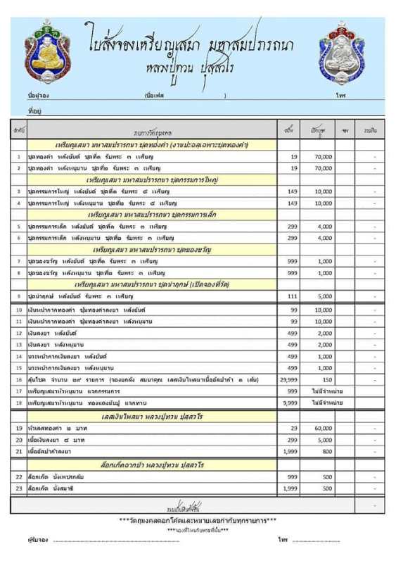 สนใจรายการไหนจองได้ตามใบรายการครับ