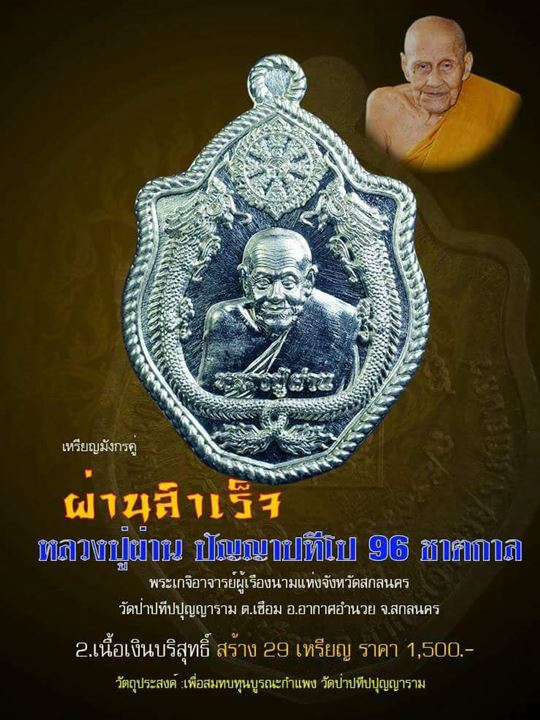 *** เปิดจอง// เหรียญมังกรคู่ "ผ่านสำเร็จ" ชาตกาล 96 ปี หลวงปู่ผ่าน ปัญญาปทีโป วัดป่าปทีปปุญญาราม จ.สกลนคร