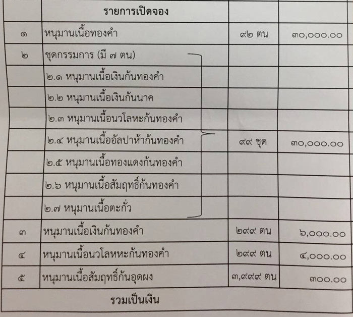 รายการที่ 3) หนุมาน เนื้อเงินก้นทองคำ มียอด 1 ตน