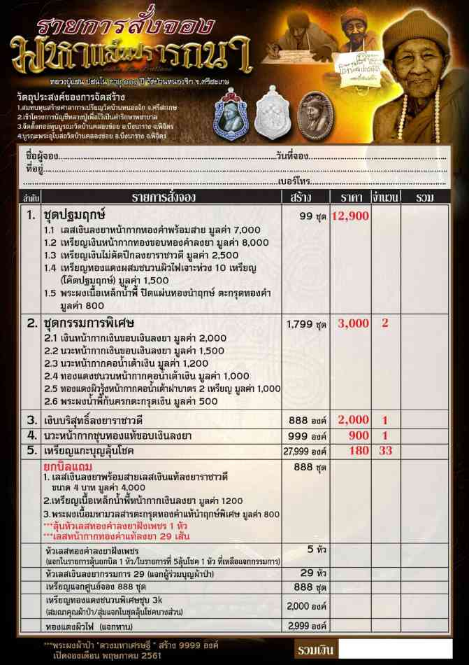 หรือเลือกสั่งจองตามรายการครับ