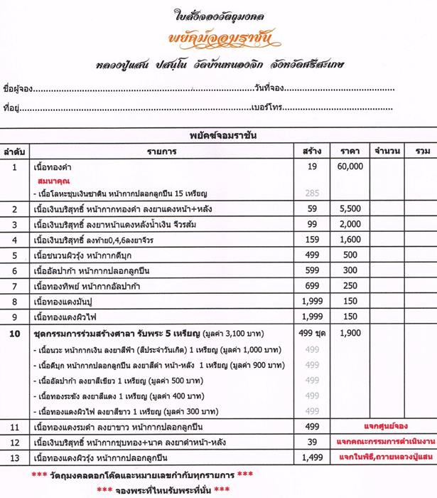 *** มีรายการเปิดจอง ดังนี้ครับ