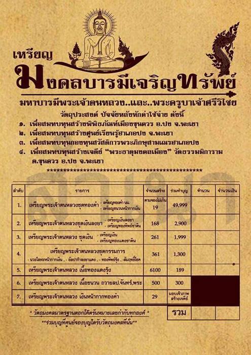 รายการเปิดจอง เหรียญมงคลบารมีเจริญทรัพย์