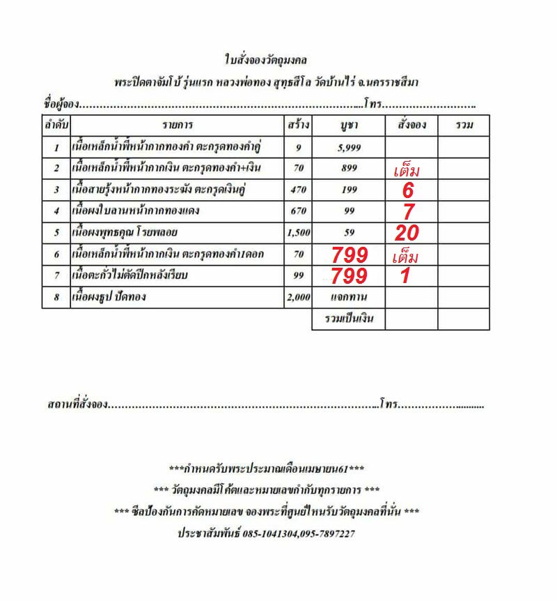 ยินดีเป็นสะพานบุญ..จองบูชาร่วมบุญเชิญค่ะ |