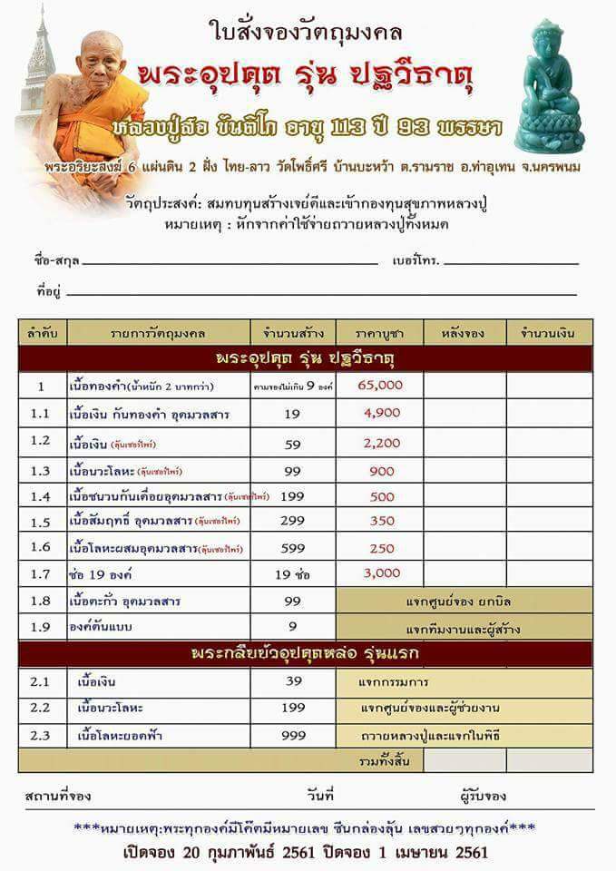 *** กำหนดรับพระเดือน เมษายน 2561 เป็นต้นไปครับ