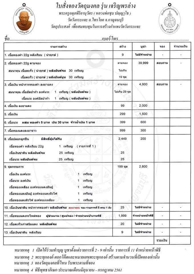 รายการที่เปิดให้จอง เหรียญเจริญพร หลวงพ่อชุบ