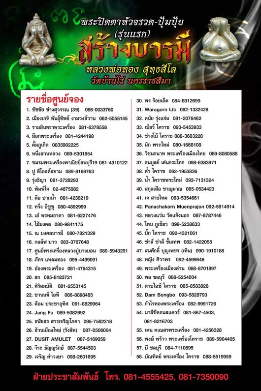 พุทธาภิเษก ณ วัดบ้านไร่ อ.ด่านขุนทด จ.นครราชสีมา เดือนมิถุนายน 2561
