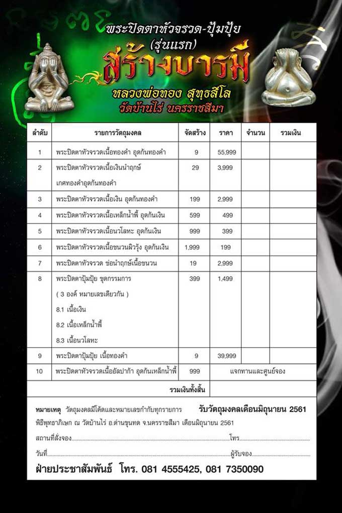 รับวัตถุมงคล เดือน มิถุนายน 2561