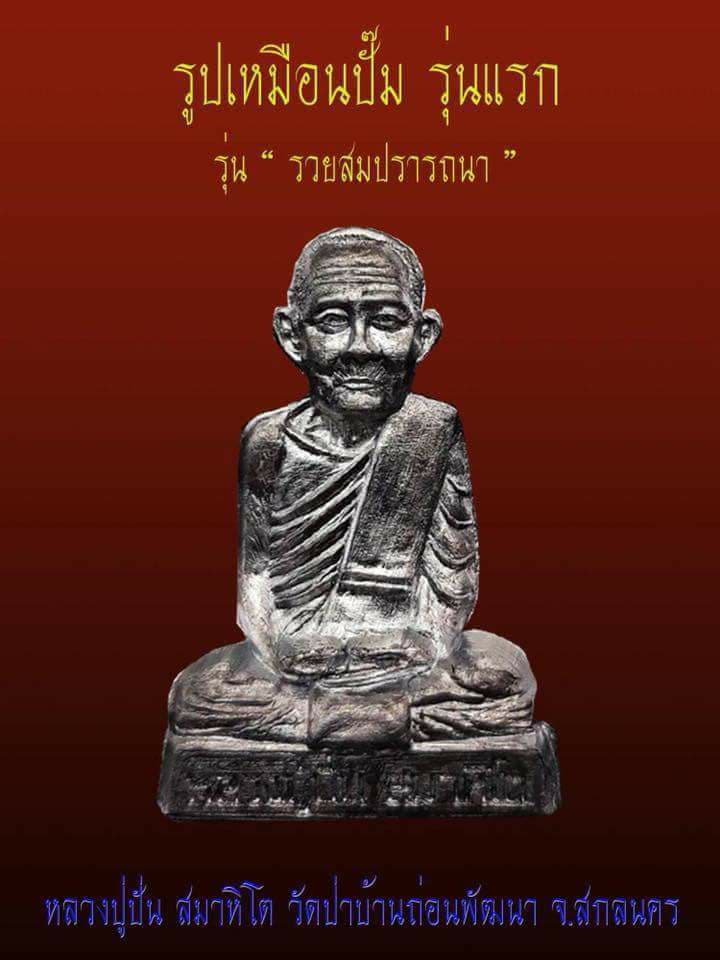 รูปเหมือนปั๊มรุ่นแรก รุ่น รวยสมปรารถนา หลวงปู่ปั่น สมาหิโต วัดป่าบ้านถ่อนพัฒนา จ.สกลนคร