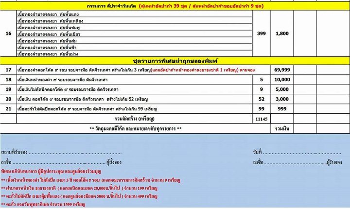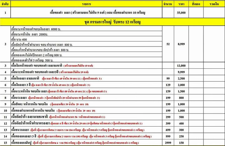 (ทุกรายการเเพคปิดซีล ลุ้น ลงยาสีต่างๆ, หน้ากาก ฝาบาตร เเละทองคำ..ตามรายละเอียดในใบจอง