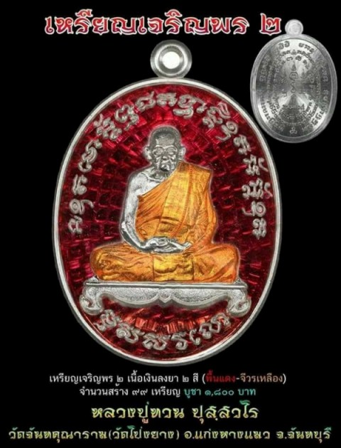 4 เนื้อเงินลงยา2สี (พื้นเเดง-จีวรเหลือง) เหรียญละ1800 บาท สอบถาม