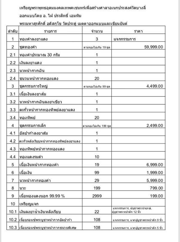 รายการ 2.ชุดทองคำ(รับพระ 23 เหรียญ) ราคาจอง 59,999.-บาท มียอด= สอบถาม