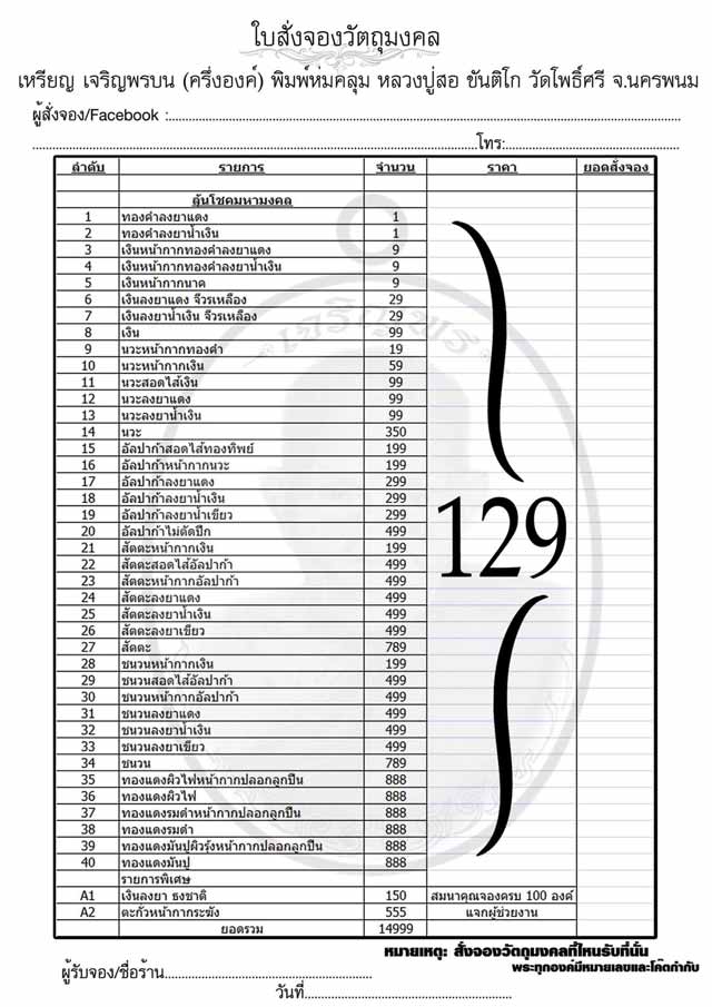 เหรียญลุ้นเนื้อลุ้นโชค มี 100 เหรียญๆละ 129 บาท