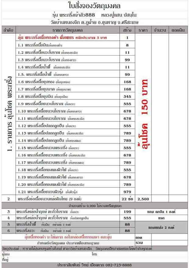 รายการลุ้นโชค ราคาบวก ***รอบสุดท้าย ก่อนพระออก*** เอาไปลุ้นกันครับ